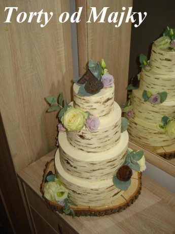 spodok: van. a čok. korpus, pribináčik plnka, jahody, 2.p.: van. a čok.k, mascarpone s bielou čoko, maliny, 3.-4.p: mramorový korpus, šľahačkový krém s bielou čokoládou, maliny a jahody, obtretá plnkou s bielou čokoládou, váha: 8,1 kg